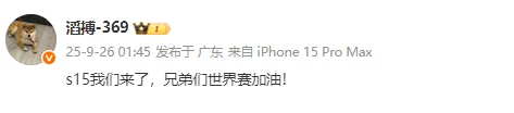 虎扑09月26日讯 战胜IG晋级世界赛后,TES上单选手369发文: