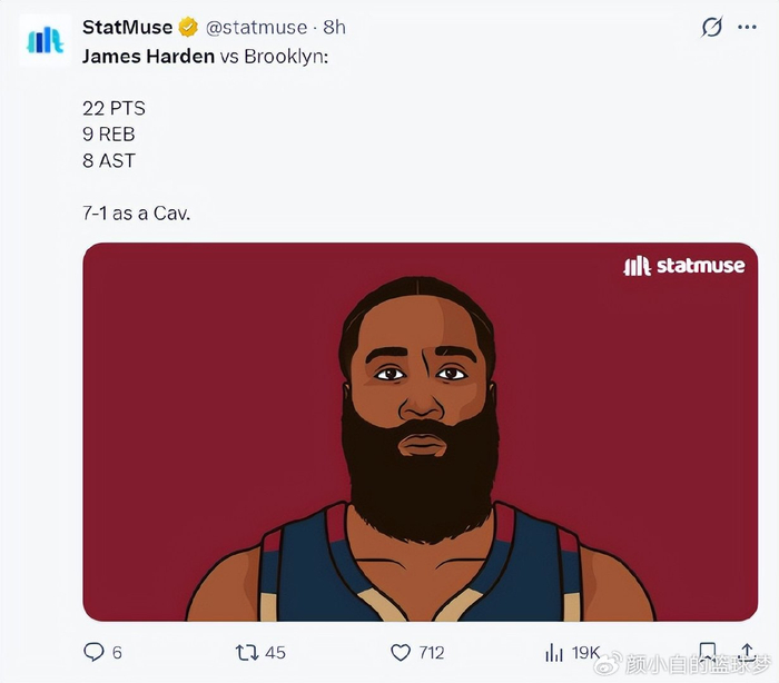 赛后阿特金森盛赞哈登带伤鏖战也非常出色,而且他在场骑士队的进攻流畅性明显更佳。